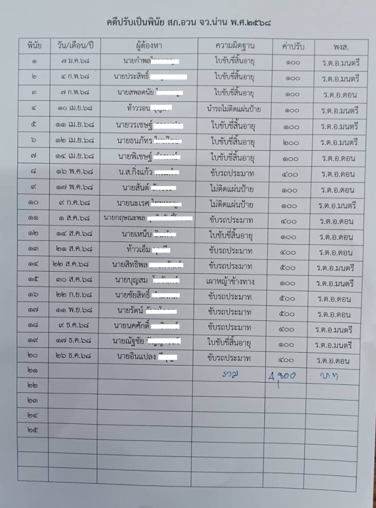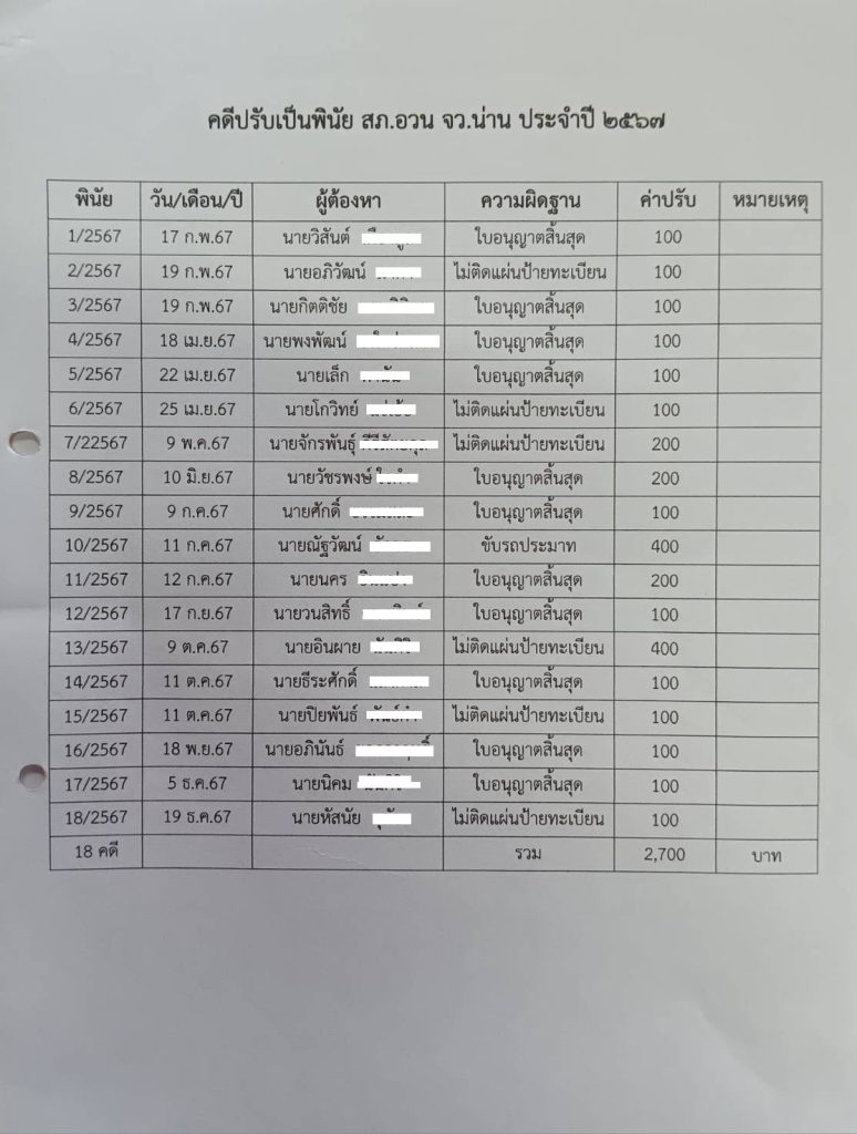 ข้อมูลปรับเป็นพินัย สภ.อวน ประจำปี2567-2568 2 มกราคม 2569 โดย admin / ข่าวประชาสัมพันธ์,ข่าวกิจกรรม,ข่าวประชาสัมพันธ์,ข่าวฝากประชาสัมพันธ์,ข่าวภารกิจและผลการดำเนินงาน สภ.อวน FacebookFacebookLINELine
