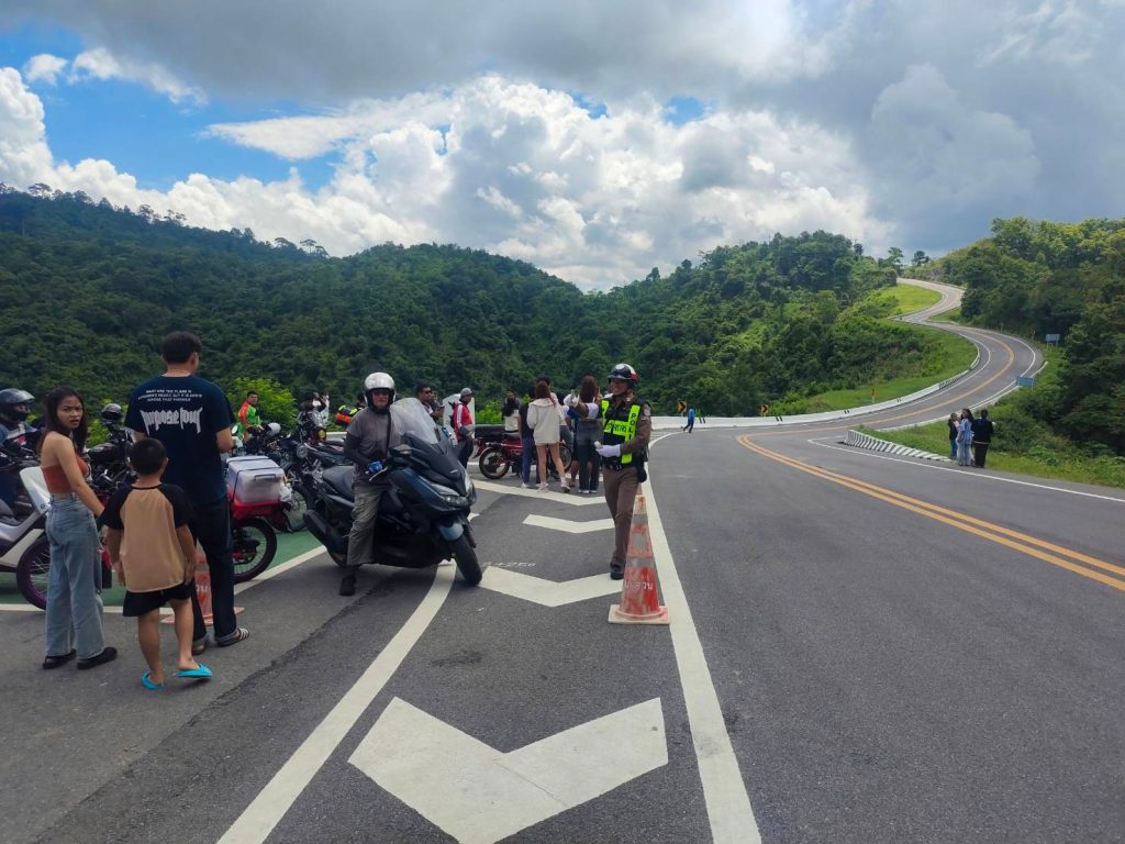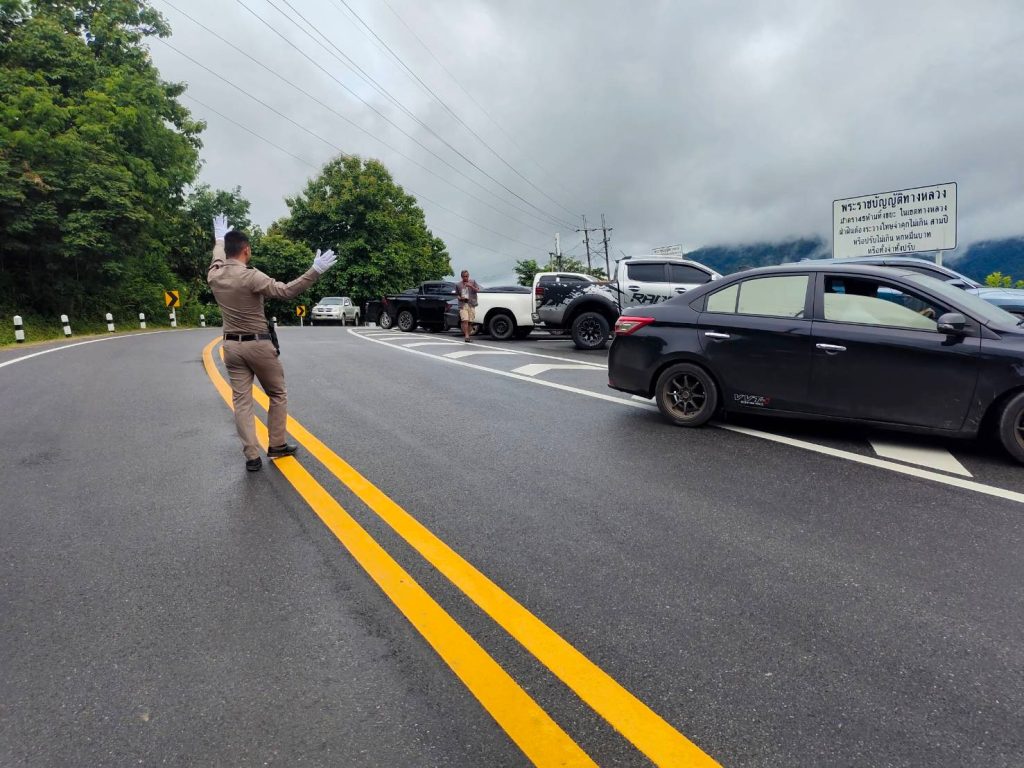 เจ้าหน้าที่ตำรวจสภ.อวนอำนวยความสะดวกด้านการจราจรที่ถนนหมายเลข3 ช่วงวันหยุด
