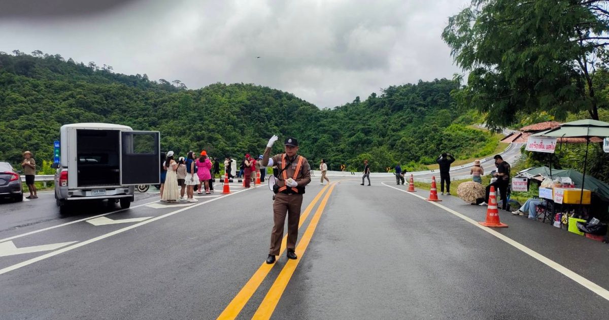 เจ้าหน้าที่ตำรวจสภ.อวนอำนวยความสะดวกด้านการจราจรที่ถนนหมายเลข3 ช่วงวันหยุด