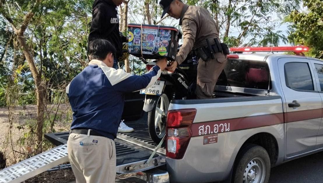 เจ้าหน้าที่ตำรวจ สภ.อวน ช่วยเหลือนักท่องเที่ยว รถจักยานยนต์ ยางรั่วก่อนถึงโค้งถนนหมายเลข3