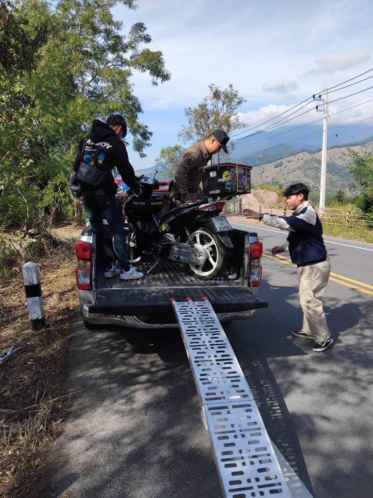เจ้าหน้าที่ตำรวจ สภ.อวน ช่วยเหลือนักท่องเที่ยว รถจักยานยนต์ ยางรั่วก่อนถึงโค้งถนนหมายเลข3