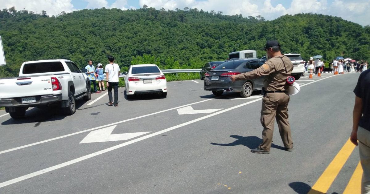 เจ้าหน้าที่ตำรวจ สภ.อวน ปฏิบัติหน้าที่อำนวยความสะดวกด้านการจราจรบนถนนเช็คอิน ถนนโค้งเลข 3
