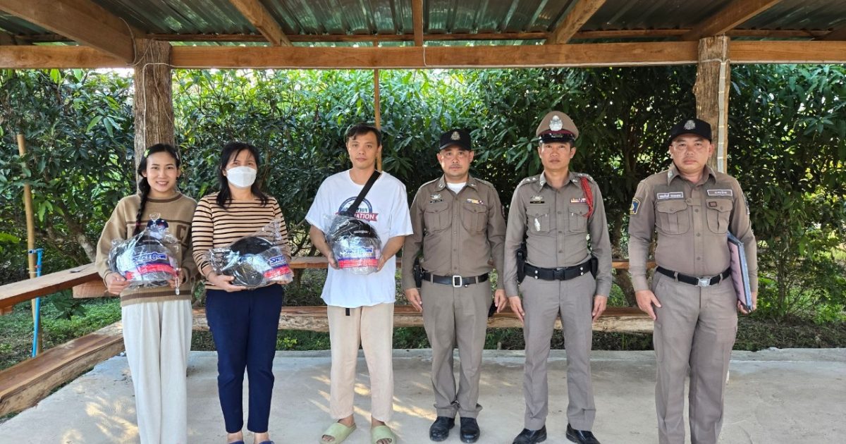 เจ้าหน้าที่ตำรวจ สภ.อวน มอบหมวกนิรภัย ให้กับประชาชนในการเดินทางปลอดภัยช่วง เทศกาลปีใหม่2568