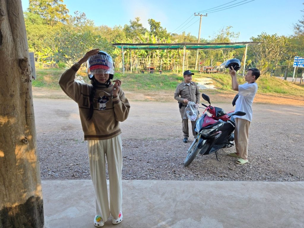 เจ้าหน้าที่ตำรวจ สภ.อวน มอบหมวกนิรภัย ให้กับประชาชนในการเดินทางปลอดภัยช่วง เทศกาลปีใหม่2568