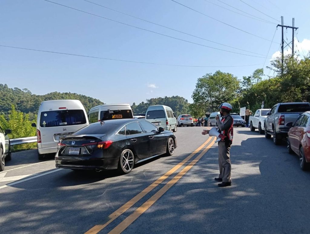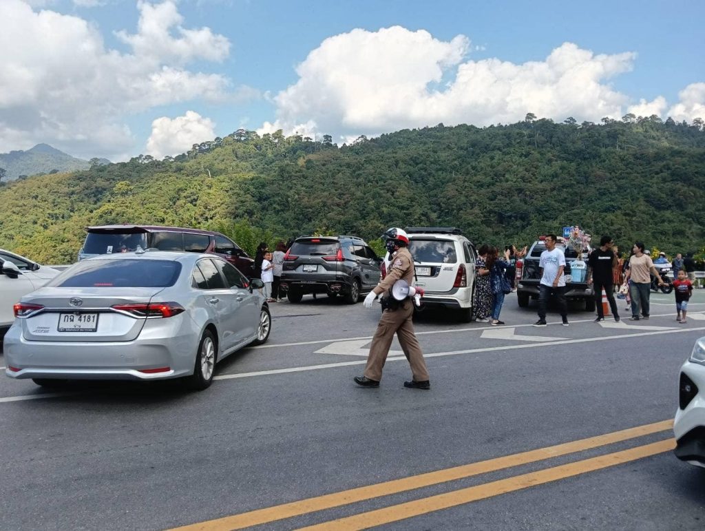 ปฎิบัติหน้าที่อำนวยความสะดวกด้านการจราจรและบริการประชาชน นักท่องเที่ยวถนนโค้งเลข 3