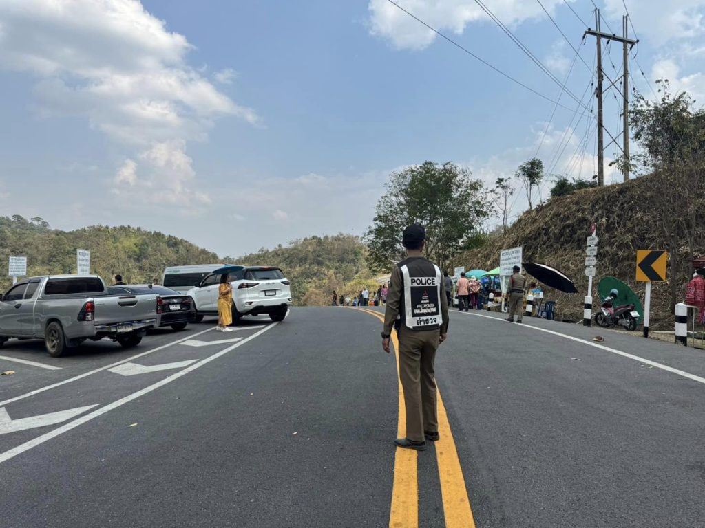 เจ้าหน้าที่ตำรวจสภ.อวน อำนวยความสะดวกการจราจร ถนนหมายเลข3
