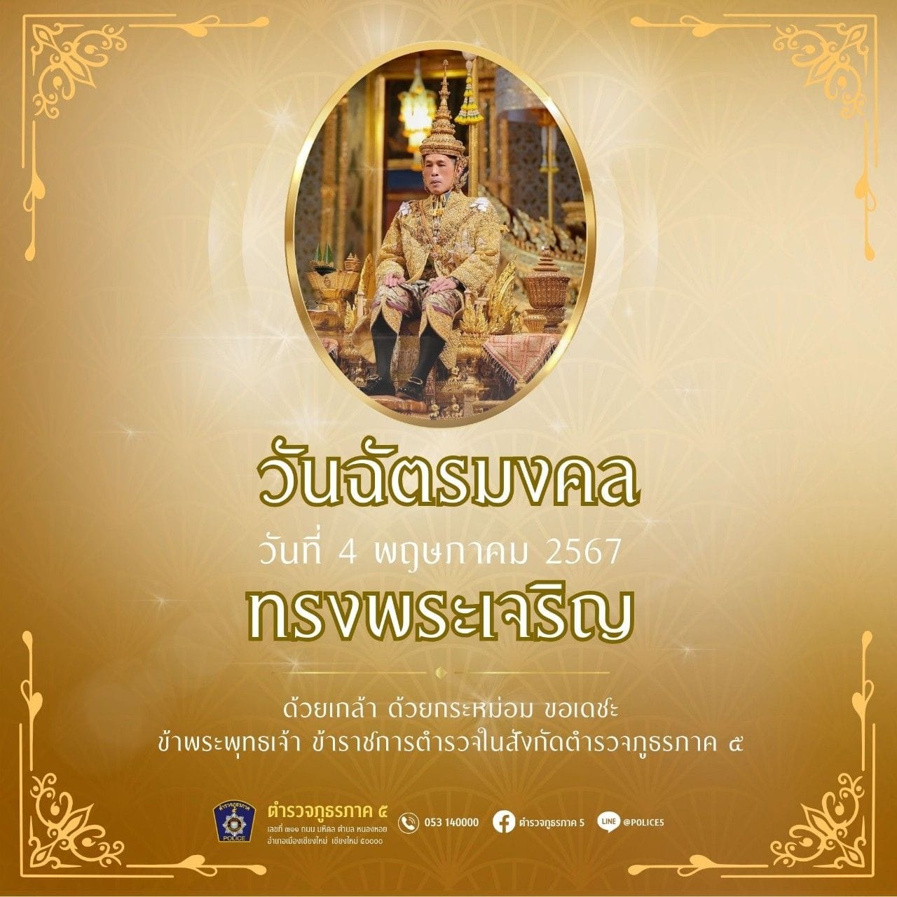 วันฉัตรมงคล ๔ พฤษภาคม ๒๕๖๗ วันฉัตรมงคล๔ พฤษภาคม ๒๕๖๗ทรงพระเจริญด้วยเกล้าด้วยกระหม่อม ขอเดชะข้าพระพุท