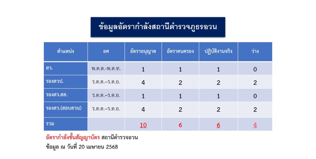• อัตราส่วน ตำรวจ : ประชากรตำบลอวน อำเภอปัว